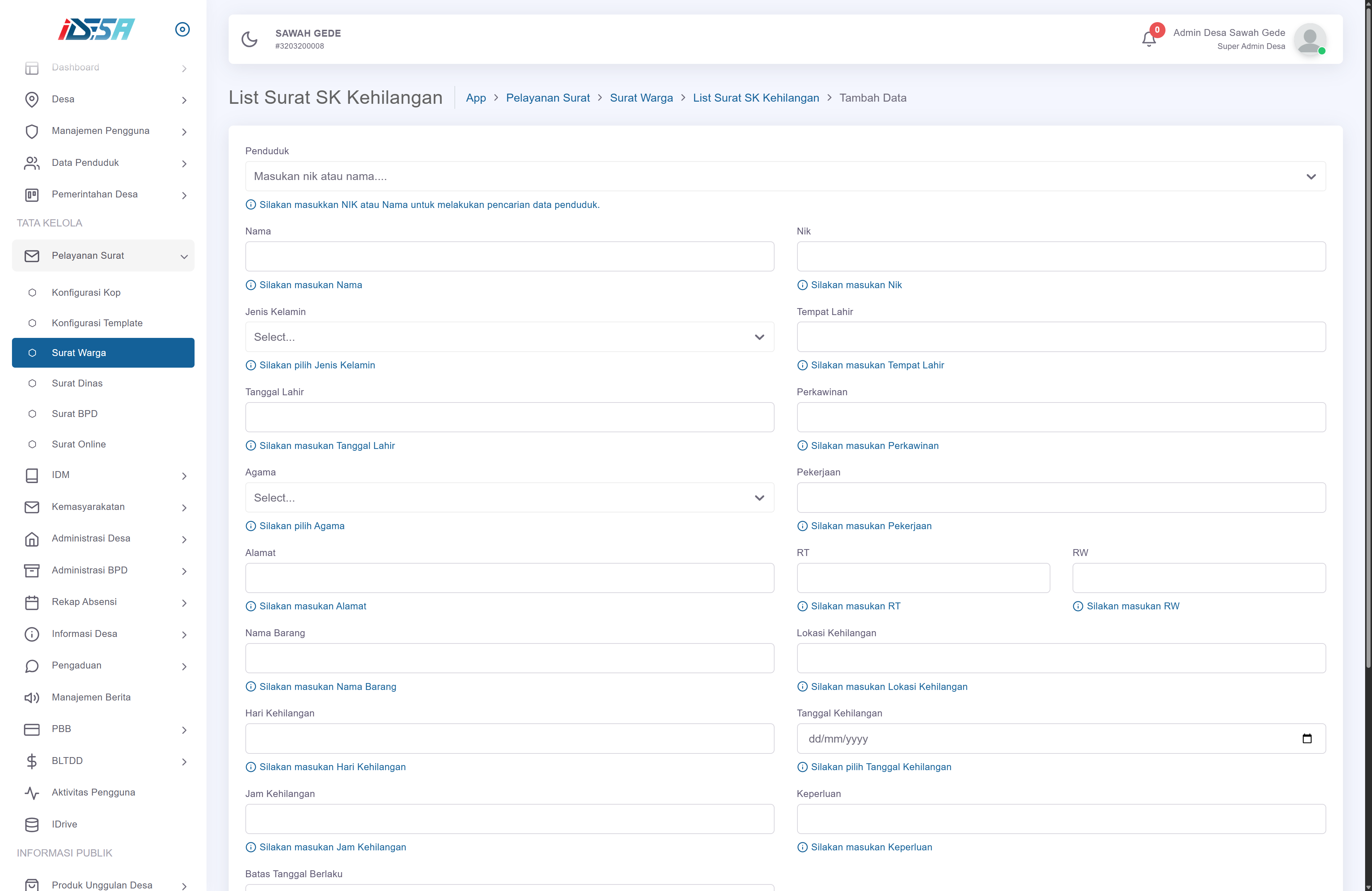 IDESA adalah aplikasi digital desa terpadu untuk pelayanan masyarakat, administrasi desa, pengelolaan data, dan transparansi informasi dalam satu platform modern yang mudah digunakan.