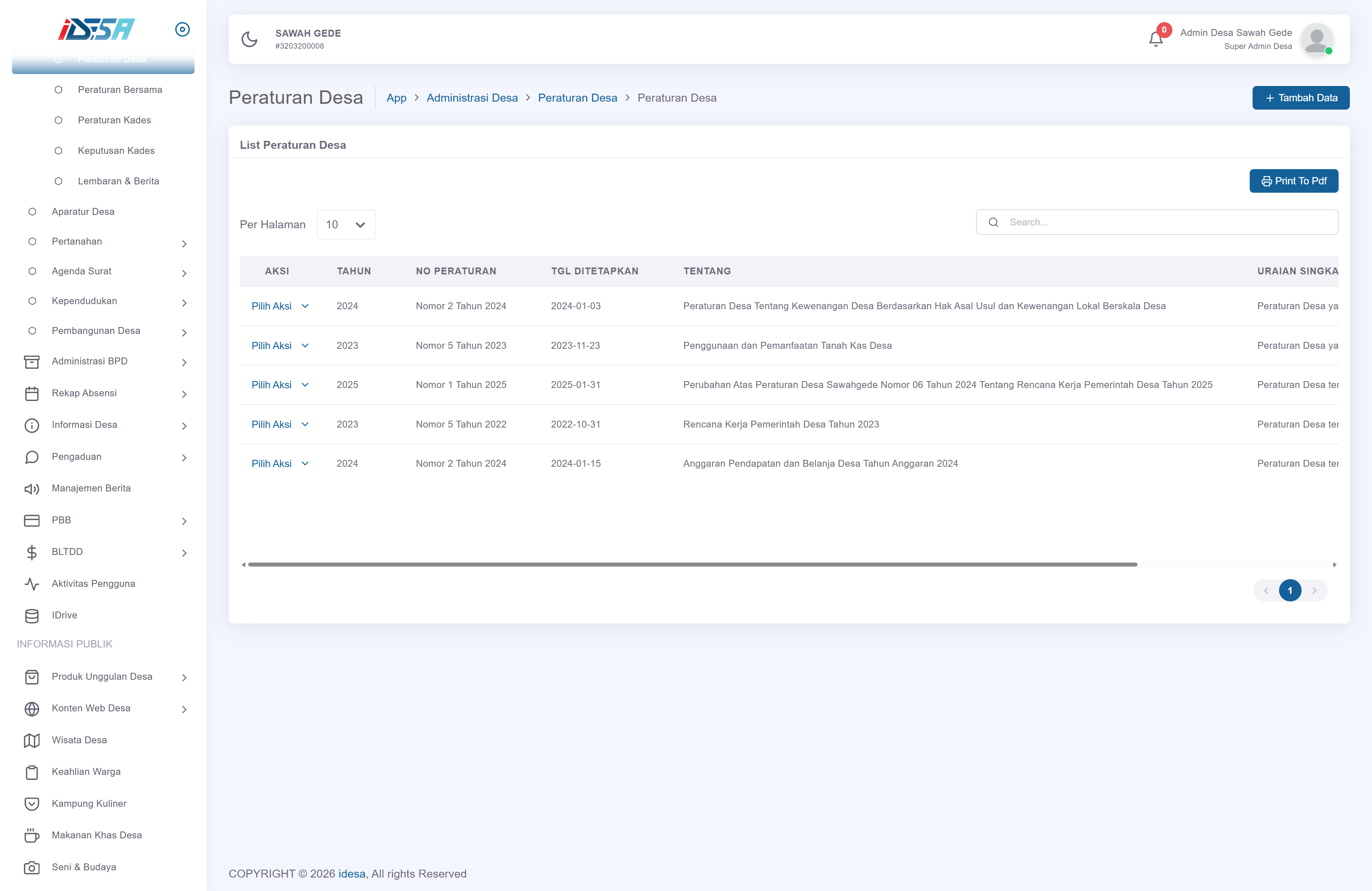 Mulai dari administrasi kependudukan, pengelolaan data, pengelolaan anggaran, pelayanan publik, hingga pengembangan ekonomi desa—dilakukan secara terintegrasi dan berbasis data, bukan lagi secara manual.